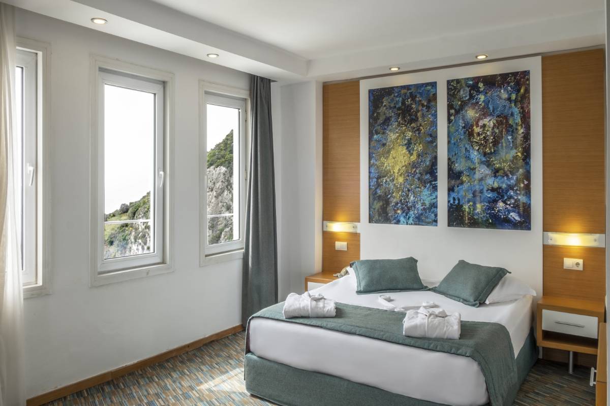 Ege Denizi’nin büyüleyici manzarasına hakim bu geniş odalar, ferah yaşam alanı arayan misafirler için ideal bir konfor sunar. Modern tasarımı, doğal ışık alan yapısı ve fonksiyonel yerleşimi sayesinde hem çiftler hem de aileler için mükemmel bir konaklama ortamı oluşturur.